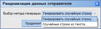 Нажав кнопку "Случайно" справа от поля "Имя отправителя", Вы увидите окно "Рандомизация данных отправителя":